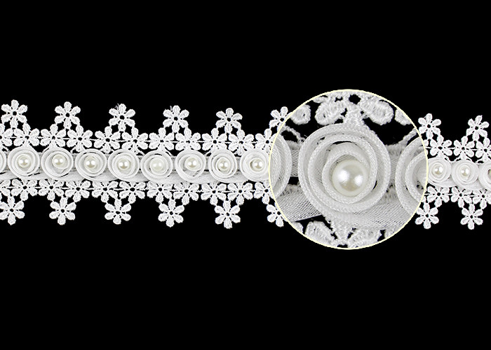 3D Bloem Frans Venetië Guipure kant Trim met parel Perlen voor bruidsjurk