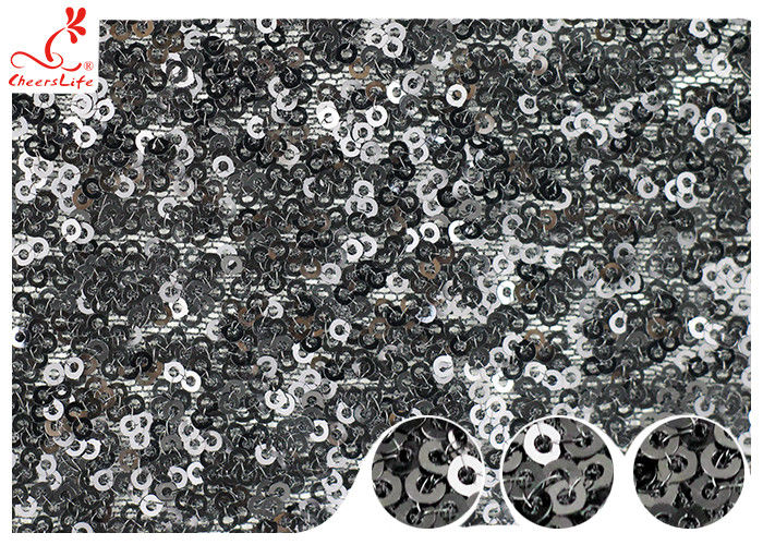 Glanzend geborduurd zwart zequin mesh stof voor feest avondjurkcontroleer 5-7 keervóór verpakking100% inspectie